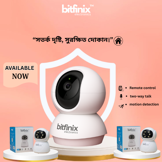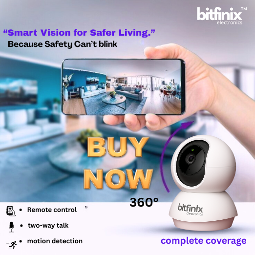 Keep your space safe and under control with the Bitfinix 1000P HD WiFi CCTV Camera. Designed for modern surveillance, this smart camera offers crystal-clear HD video, 360° panoramic rotation, and two-way audio communication — ensuring complete visibility and peace of mind, anytime and anywhere.