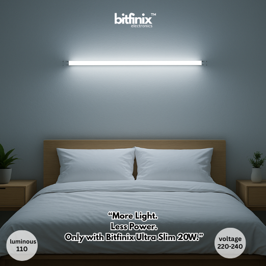 The Bitfinix Ultra Slim Tube Light is designed for modern homes and offices, combining premium brightness with an elegant slim profile. With a powerful 20W output delivering up to 2000 lumens, it ensures crystal-clear illumination that makes every corner shine.